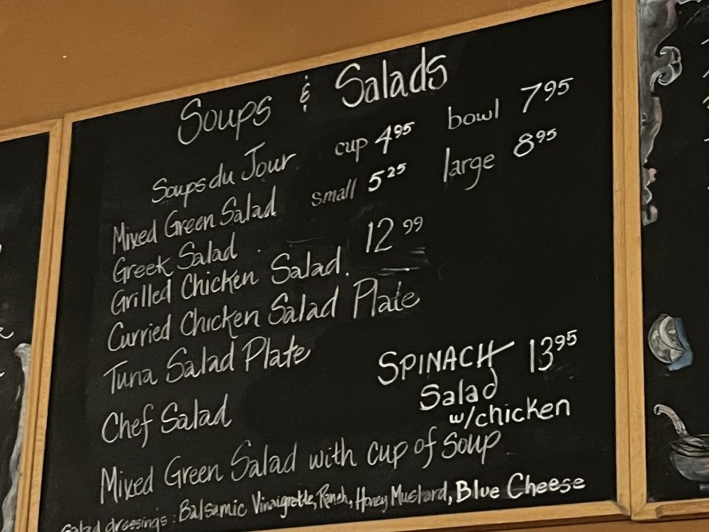 Grilled chicken atop a bounty of spinach with Feta, walnuts, red onion, cucumber and cherry tomatoes.
